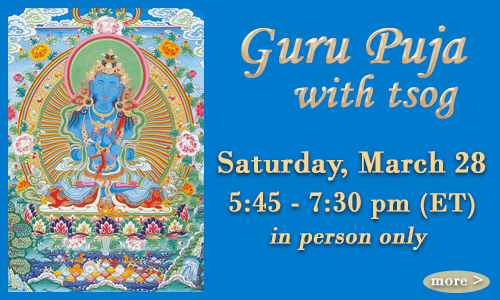 3. LIVE STREAM via YouTube: This is a non-interactive, view-only option.  Kadampa Center volunteers are no longer monitoring chat on YouTube.  If you'd like a more interactive experience, please plan to join using one of the other options above.